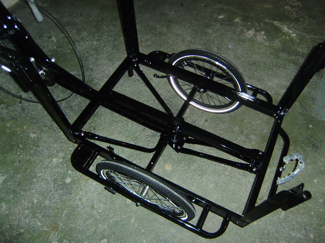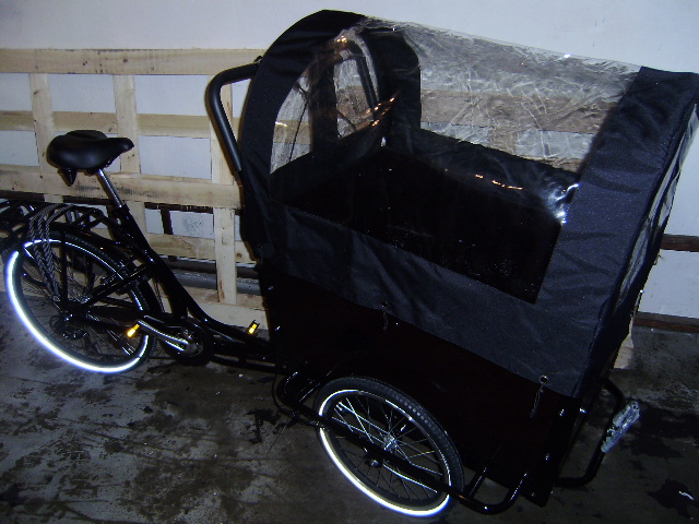 Kolo je v černém provedení a je navíc vybaveno celkem pěknou snímatelnou stříškou nákladového prostoru. Na další fotografii je možné vidět nosnou kostru nákladového prostoru. Tato fotografie může být důležitá pro zájemce, kteří uvažují, že by nákladní kolo využívali k podnikání. Na kostru nákladové prostoru nebude obtížné např. připevnit nějaký druh mrazáku pro mobilní prodej zmrzliny nebo nákladový prostor upravit třeba pro prodej párku v rohlíku.